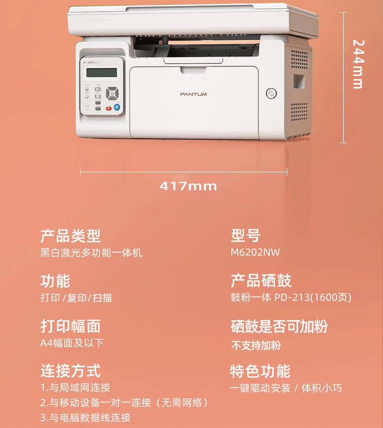 參數 [品牌] 奔圖 [型號] M6202NW [毛重] 11.5KG